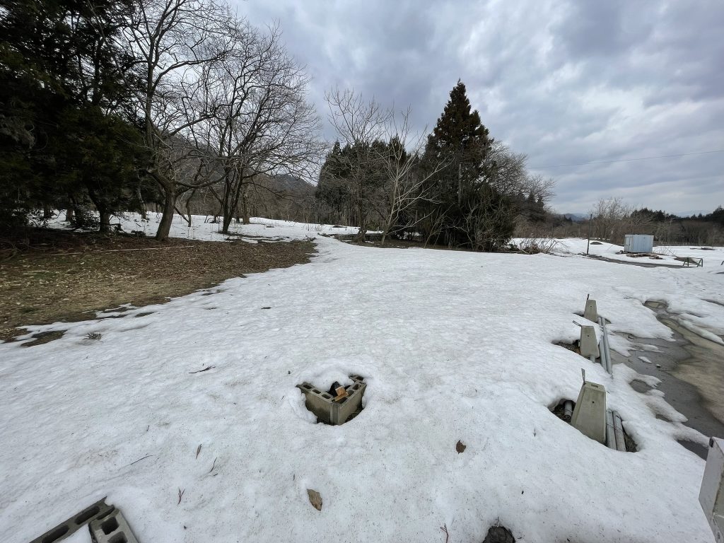 むらかみうのとろキャンプ場はまだ積雪があります。