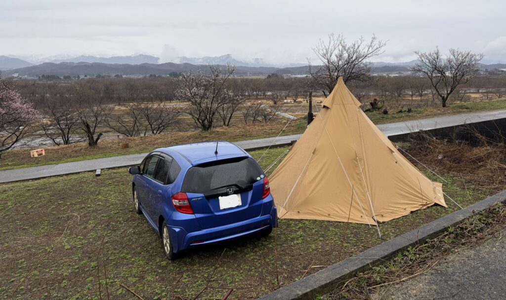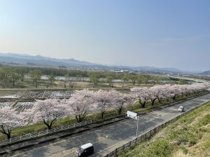 キャンプ場は高台にあるので見下ろせば国道沿いの桜並木も見ることができます。