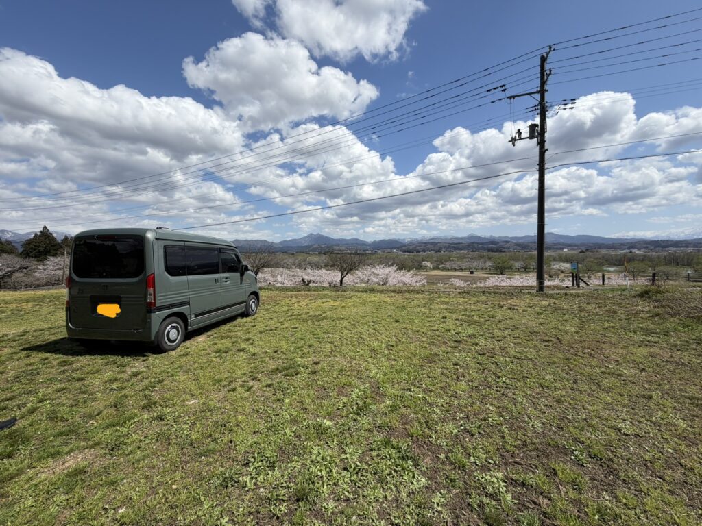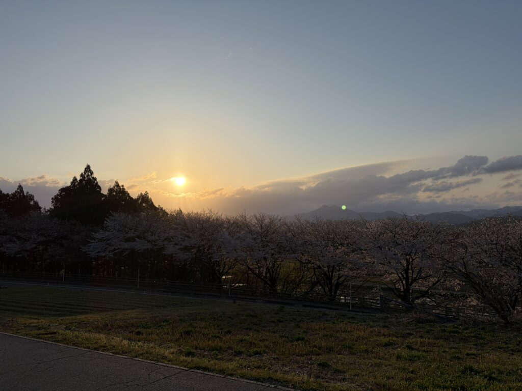 風が強い日でしたが晴れ間もあり、お花見日和となりました。キャンプ場の桜の木も国道の桜並木もきれいでした!